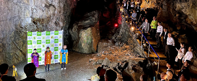 日原鍾乳洞で町制70周年記念事業