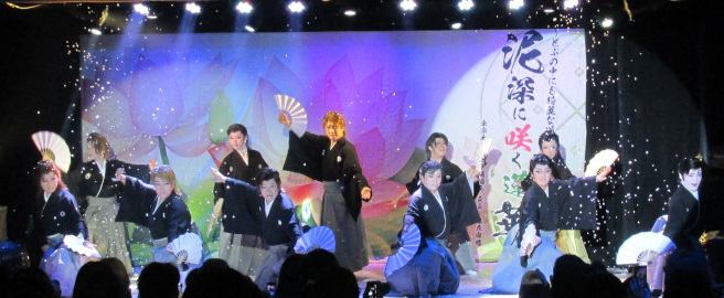 あきる野市の五光建設(中原聡美社長)が運営する「立川けやき座」(立川市曙町)が9月25日、特別公演「10周年記念座長大会」を行い、昼の部、夜の部とも満席となった。同劇場は多摩地域初の大衆劇場として2015年8月にオープン。人情劇や時代劇を中心とした芝居と演舞ショーの2部形式の舞台内容は、笑いあり涙ありのエンターテインメントとしてファンも多い。大衆劇は月替わりで全国各地の劇団が公演する。10周年座長大会では同劇場にゆかりある劇団座長10人が全国から集まり、九州演劇協会の橘大五郎会長も駆け付けた |