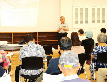 JR昭島駅北側の巨大物流センター計画に対して新たに「公害紛争処理制度」を活用して日本GLP社に対話の場を求める団体「GNP昭島公害紛争調停団」(愛称=くじら調停団)は7月28日に都庁で第1回調停を終えたことから、8月9日、昭島市内のアキシマエンシスで報告会を開き申請人など市民50人が参加した。調停内容は非公開のため詳細の報告には至らなかったが、調停団としては9月30日(火)の第2回調停に向けて①工事車両などによる騒音②データセンターなどの稼働による排熱③樹木伐採などによる生態系への影響、の3点について公害の申し立てをしていく考えだという |