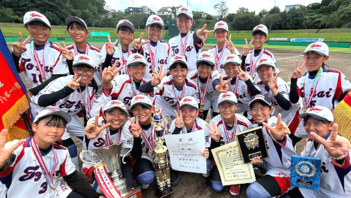 大学菅生高等学校中等部ソフトボールクラブ(村田隆一監督、植田さくらコーチ、部員21人)は、8月18日~21日に大分県竹田市で開催された第47回全国中学校ソフトボール大会女子の部(28校出場)で優勝し、連覇を達成。決勝まで全4試合を完封勝ちする圧倒的な強さで2年連続2回目の日本一に輝いた。菅生は都大会、関東大会をともに優勝して全国大会に出場。初戦の南薩SC(鹿児島県)を4―0で下し、準々決勝は平川市立平賀東・平賀西・尾上中(青森県)に1―0、準決勝は浜松市立浜北北部中(静岡県)に4―0で勝利して決勝戦に進出。岸和田市立岸城中(大阪府)との決勝は、延長8回タイブレークの末、1―0でサヨナラ勝ちし、栄冠をつかんだ |