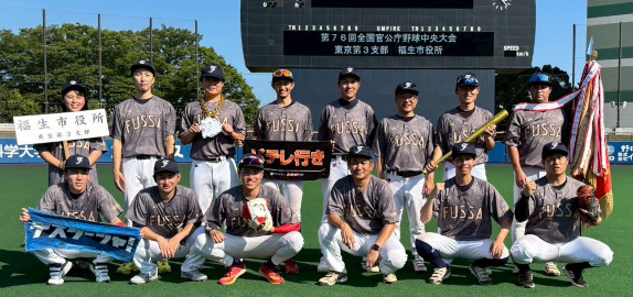 福生市の職員で構成する「福生市役所野球部」(田村造司監督)は8月17日~21日に行われた「全国官公庁野球大会」(全国官公庁野球連盟取材)に初出場し、初戦の姫路市役所を4―0で下して全国初勝利を記録。2回戦で小樽市役所に敗れたものの、倉津貴之主将(32)は「来年以降も全国で上位に行けるよう頑張りたい」と連続出場に向けて闘志を燃やしている