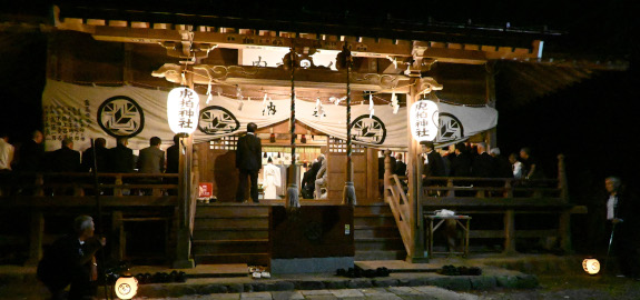 青梅市根ヶ布の虎柏(とらかしわ)神社(髙野吉裕宮司)の例大祭(豊田宏利祭礼行事保存会会長、吉川寛祭典委員長)が8月26日~28日、延喜式内社の同神社で厳かに執り行われた。例大祭と一連の行事は、「虎柏神社の祭礼行事」として、東京都の無形民俗文化財に指定されている。26日は「御殿入り(おとのいり)祭」が午後9時から始まった。夜のとばりが下りる中、神官・参列者がお祓い場で身を清め、燈火を消し、仮屋で神官祝詞を奏上する神事が行われた。28日午後には奉納相撲が行われた。