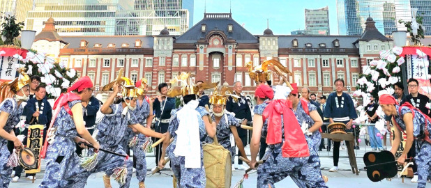 江戸文化の魅力を国内外に発信するイベント「TOKYOわっしょい」が9月12日~14日、東京駅前の行幸通りで開催。13日は檜原村の樋里獅子舞(樋里獅子舞保存会、土屋貞美会長)、14日は日の出町の下平井の鳳凰の舞(鳳凰の舞保存会、長田勝雄会長)が出演した |