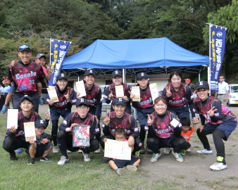 「第33回西多摩新聞社・西武信用金庫杯西ブロック親善ソフトボール大会」(西多摩新聞社主催、西武信用金庫共催、青梅市ソフトボール連盟主管)の女子の部と壮年の部の決勝戦が9月28日、運動場でTCNスポーツパーク永山(永山公園総合運動場)で行われた。女子の部はあきる野Conataが、壮年の部は南秋留エムズがそれぞれ優勝した |