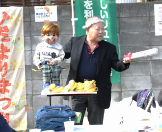腹話術でバナナの叩き売り