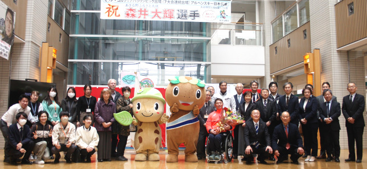 あきる野市出身のチェアスキーヤー森井大輝(たいき)選手(45)=トヨタ自動車所属=が、3月6日(金)からイタリア共和国で開催されるミラノ・コルティナ2026パラリンピック冬季競技大会のパラアルペンスキー競技5種目に日本代表として出場する。2月18日に市役所で激励会が行われ、市職員や市民らがエールを送った。森井選手は高校生のときに事故で脊髄を損傷して車いす生活となり、病院で見た長野パラリンピックをきっかけにチェアスキーを始めた。パラリンピックには2002(平成14)年のソルトレイクシティから6大会連続出場。06年のトリノの大回転で銀メダルを獲得して以来、5大会連続で7つのメダルを獲得している。金メダルはまだなく、7度目となる今回、悲願の金メダルを目指す |