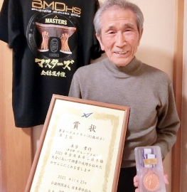 青梅市千ヶ瀬町の土方孝行さん(86)は、11月22日~24日に石川県のいしかわ総合スポーツセンターで開催された「2025年全日本卓球選手権大会(マスターズの部)」に出場し、男子ハイエイティ(85歳以上、53選手)で3位入賞した。卓球歴70年になる土方さんは「70年間の卓球人生で最高の感激と喜びを感じました」と笑顔で喜びを語る |