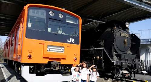 JR東日本八王子支社は1日、21日(土)のリニューアルオープンに先がけ、青梅市民や近隣住民向けの内覧会を行った。抽選で当選した市民25組約50人を含む約200人が来園した。展示車両は従来の10両に115系と直流機関車「ED60」の計3両を追加。すべての車両に雨風避けの屋根を設置した。目玉は中央線や青梅線で運行していたオレンジ色の201系。2010年の営業運転終了後に保存していた車両を展示し、大宮総合車両センターで外板修繕を行い、前面に種別表示器を取り付けた |